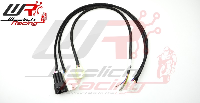 The bench flashing harness allows you to flash ECUs when they are not installed in the bike. The bench flashing harness comes with a 12v plug and needs to be used in conjunction with the Woolich Racing USB Interface.